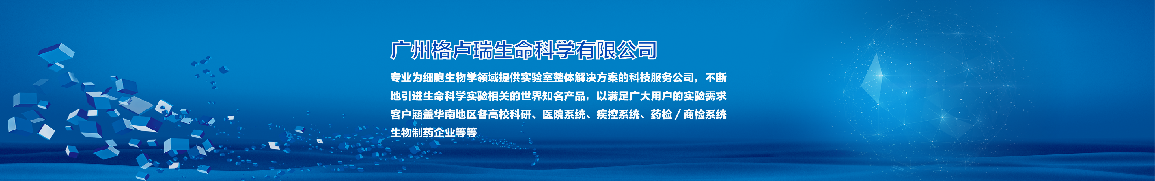 广州格卢瑞生命科学有限公司是一家专业为细胞生物学领域提供实验室整体解决方案的科技服务公司。自2006年1月28日正式成立以来,公司始终坚持以差异化的企业标准进行规划与管理,坚持质量为先、服务至上的服务理念,同时,格卢瑞人肩负着“助力中国生命健康事业快速发展”的企业使命,坚守“务实、专业、奋进和帮扶”的核心价值观。