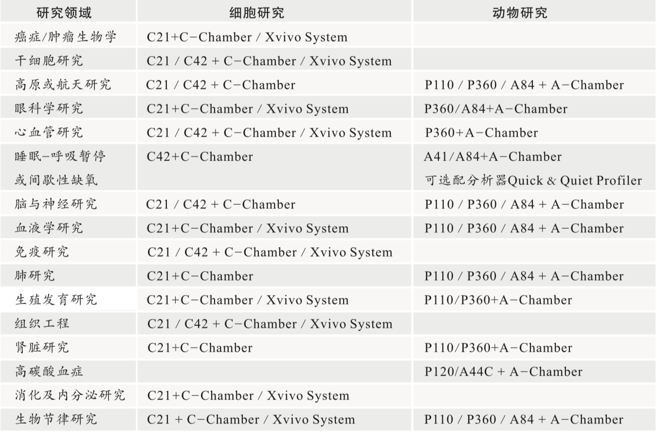 可用于模拟生物体处于特殊低氧/高氧/间歇性缺氧时的病理状态,以便于开 展相关机理和疾病研究。