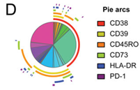 C图:Treg表型: 对Treg(CD127- CD25hi)进一步分析,以 CD39/CD73,CD45RA/CD45RO以及CD38/HLA-DR和CD45RA/PD-1进行建图,Gate到Treg(CD127- CD25hi),以研究Treg的成熟状态,调节潜力和细胞活化状态。
