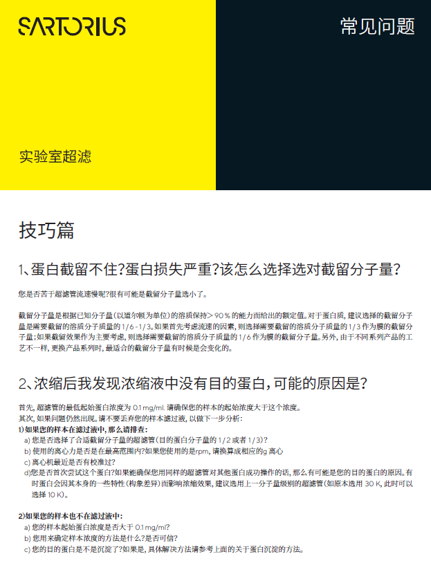 选择合适的装置:赛多利斯拥有适用于低浓度样品、DNA、蛋白质、病毒、过滤应用等广泛的装置选项;选择合适的装置可以有效改善结果。