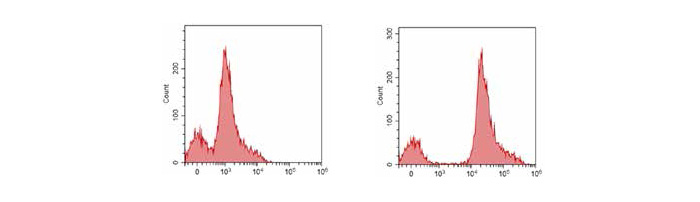 分别运用配备 561 nm 激光的 PE 通道以及 595/20 BP 滤 光片的 CytoFLEX S 流式细胞仪,以及配备 488nm 激光的 ECD 通道和标准 595/20 BP 滤光片的 CytoFLEX 流式细胞仪,对 mCherry 表达细胞株进行分析。