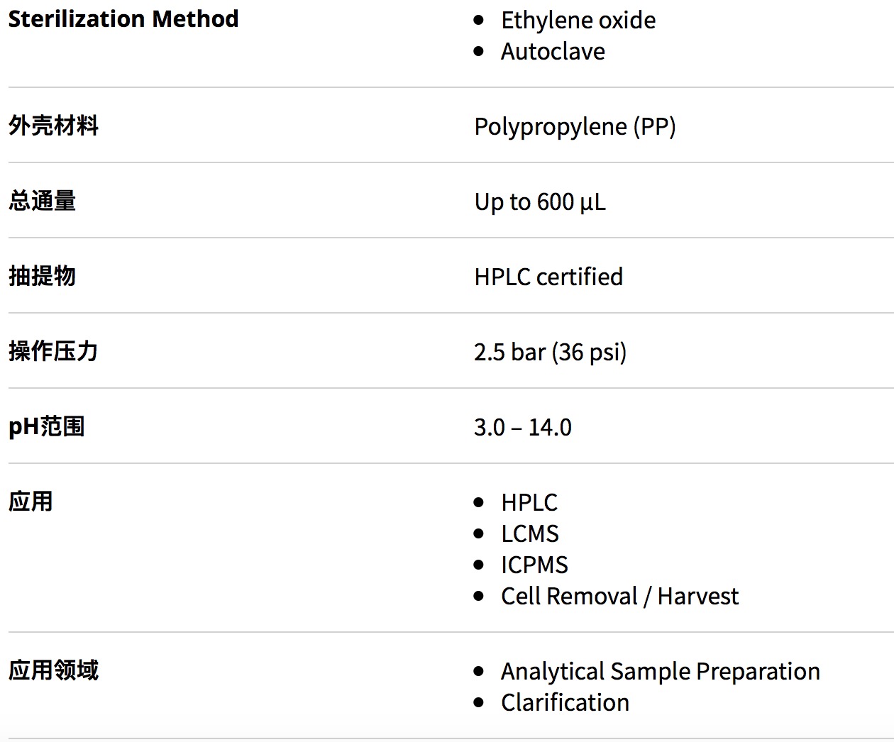 技术属性(Claristep? 过滤器17C06FT---96, 0.45 μm RC)