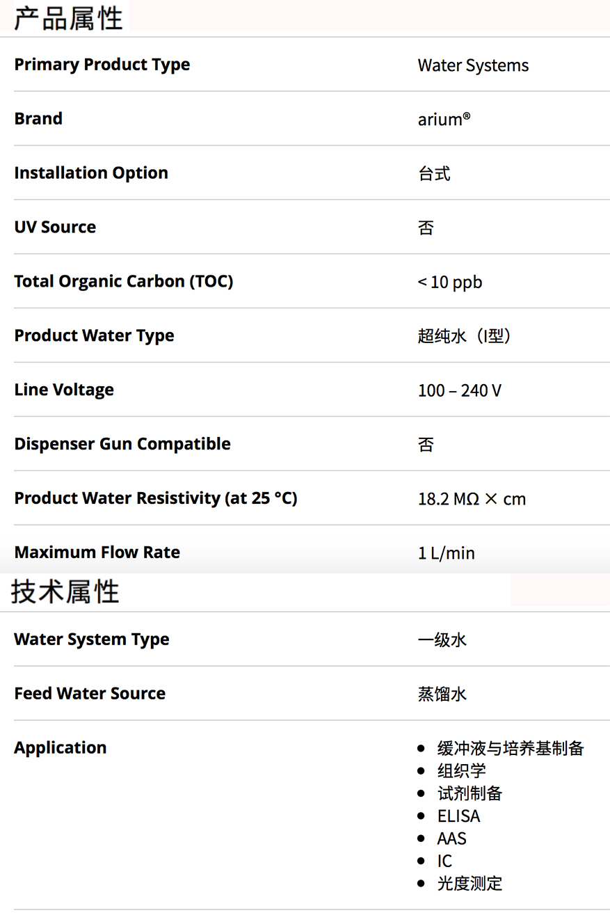 ?用于供应ASTM 1类水的紧凑型超纯水系统。arium mini 专为满足每日一级超纯水用水量10L左右的一般/关键需求而设计