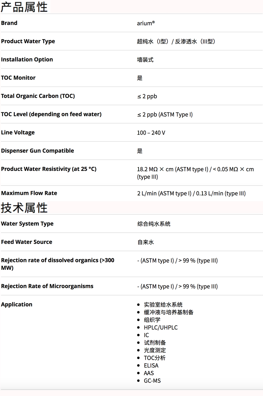 arium? comfort I纯水/超纯水一体机系统,可提供ASTM 1型超纯水与3型超纯水。该系统采用杰出的反渗透技术及独特的离子交换纯化柱,可直接连接至您的饮用水供水源,始终如一地为您提供最高质量的纯水。