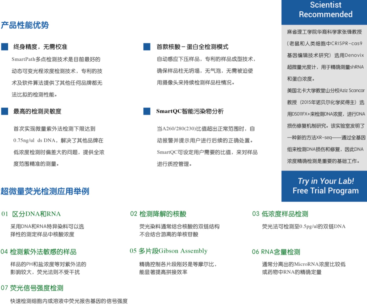 SmartPathTM技术无需拉伸样品即可自动调节光程,避免样品柱坍塌问题,具备更好的核酸和蛋白检测功能。
