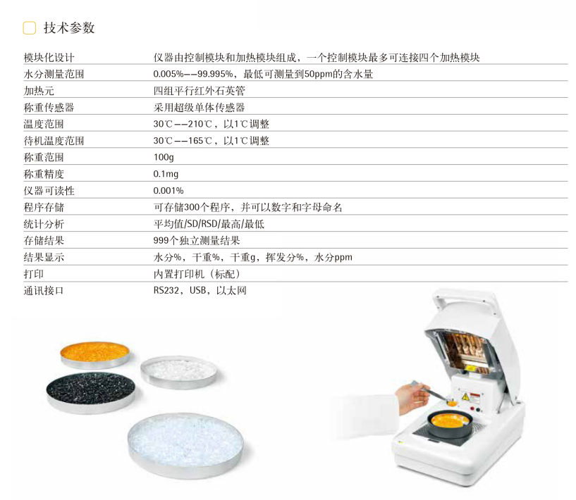 高精度测量,内置0.1mg分析天平,水分检测下限可达50ppm